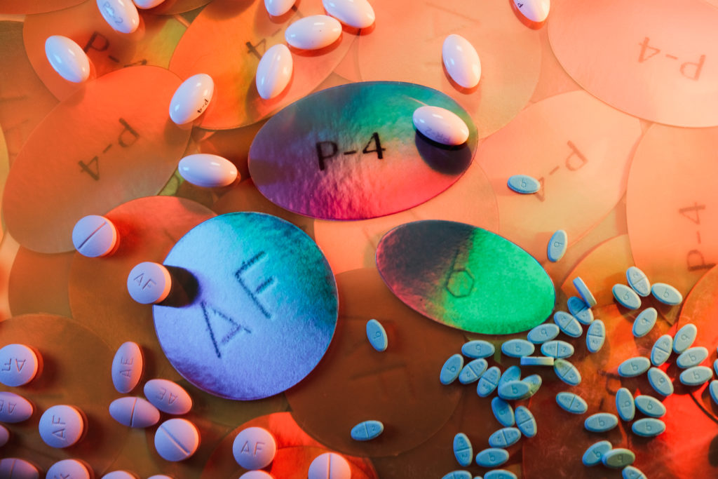 hand-packaged inside translucent orange holographic mylar baggie with custom rx labels